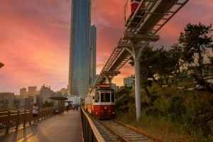 Haeundae Blueline Park consists of Haeundae Beach Train, a sightseeing train that serves as both a transportation option and a tourist train that runs round-trip from Mipo to Songjeong via Cheongsapo along the beautiful coastal scenery of East Busan; and Haeundae Sky Capsule, a romantic four-seater automatic capsule train that runs a 2-kilometer rail from 7 to 10 meters above sea level, along the coast from Mipo to Cheongsapo.